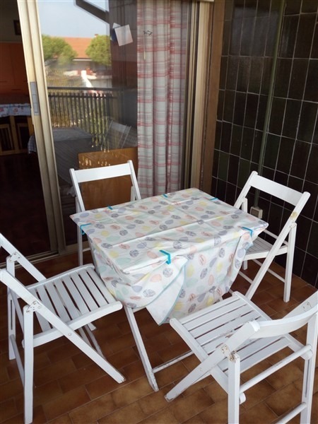 Palazzo adiacente la vecchia darsena di Lignano Sabbiadoro. Servizio di portineria, piscina e posto auto numerato. 3′ piano con terrazzo abitabile, 1 camera matrimoniale, servizio con doccia con box, soggiorno con angolo cottura e divano letto doppio ed angolo cottura (gpl), tv.